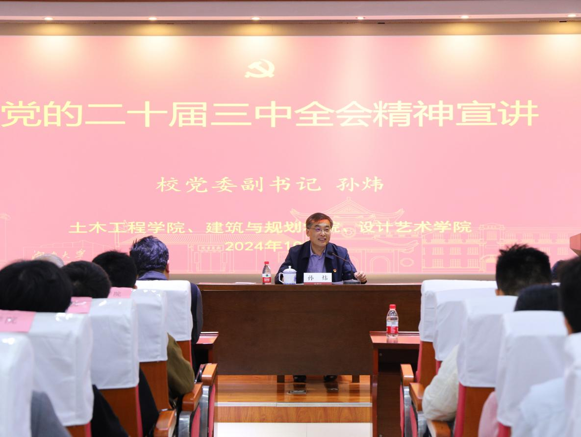 孙炜号召全体师生要更加紧密地团结在以习近平同志为核心的党中央周围,切实在思想上政治上行动上统一到党的二十届三中全会精神上来,为全面深化改革,推进中国式现代化建设贡献力量。